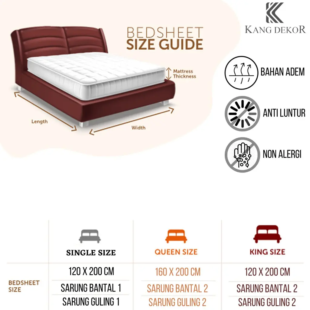 * Sprei Flat / Karet 180x200 cm ( 2 Sarung bantal , 2 Sarung guling )