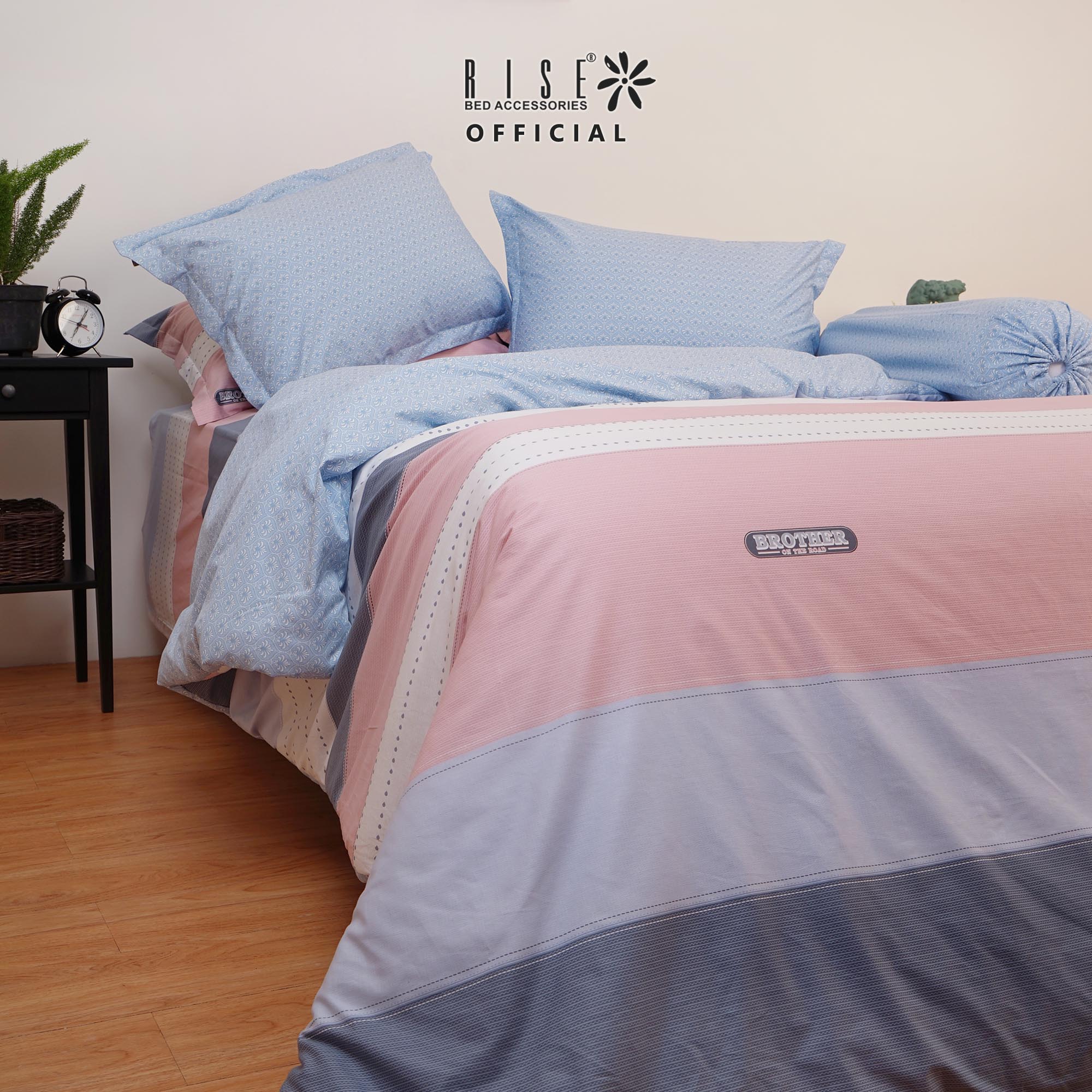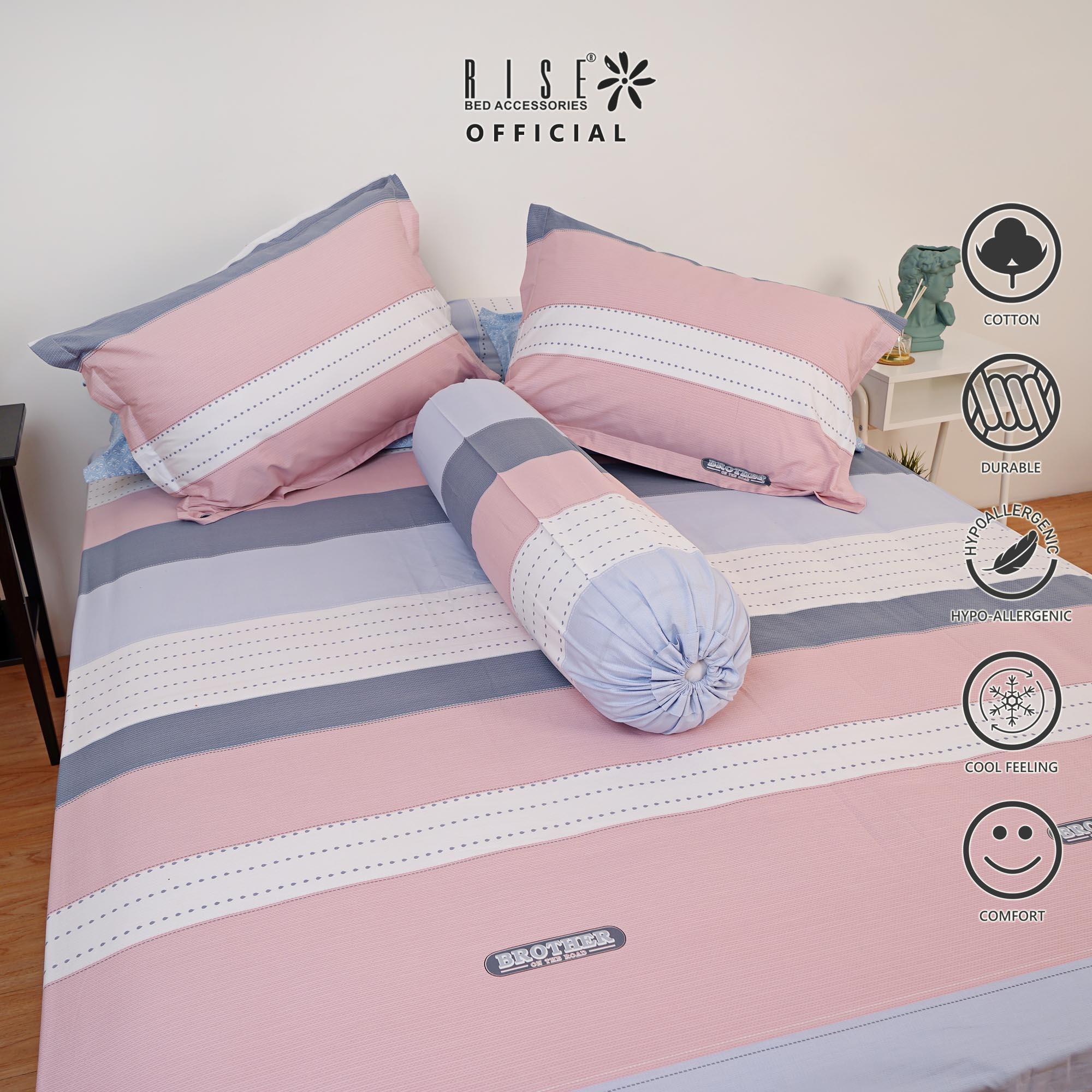 BROTHER katun satin dengan motif garis dan geometris. Perpaduan warna navy, abu dan soft pink cocok bagi siapapun.